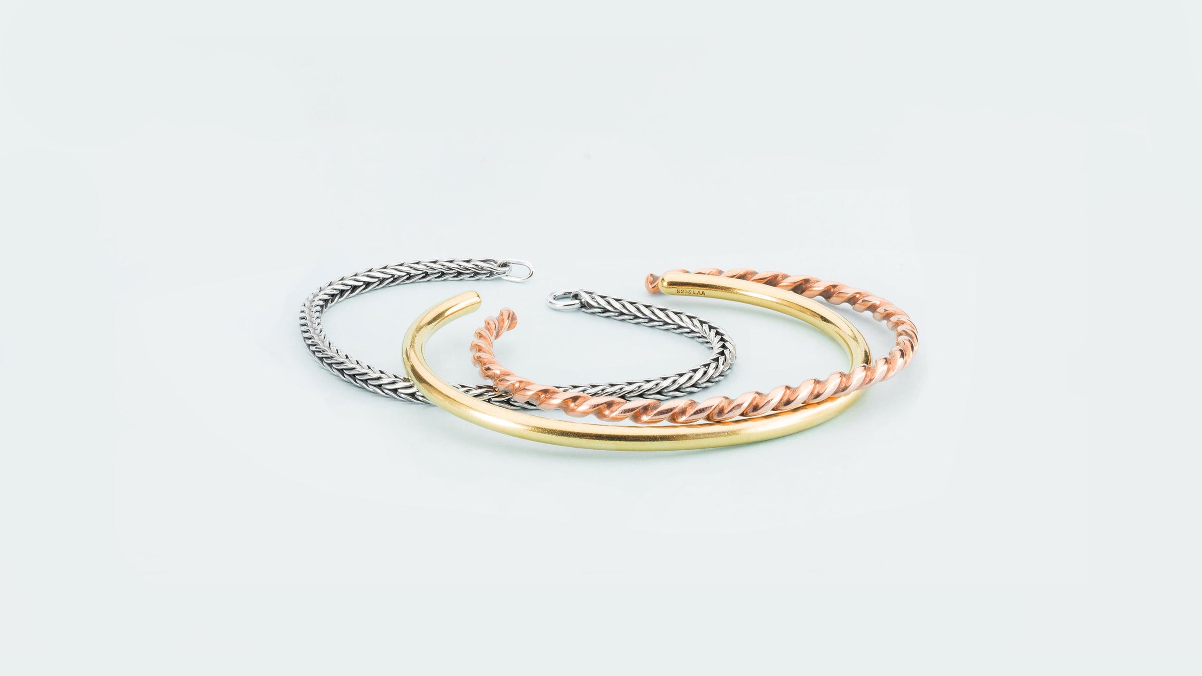 Trollbeads bangles in gold and copper and silver foxtail bracelet Trollbeads bangles in gold and copper and silver foxtail bracelet
