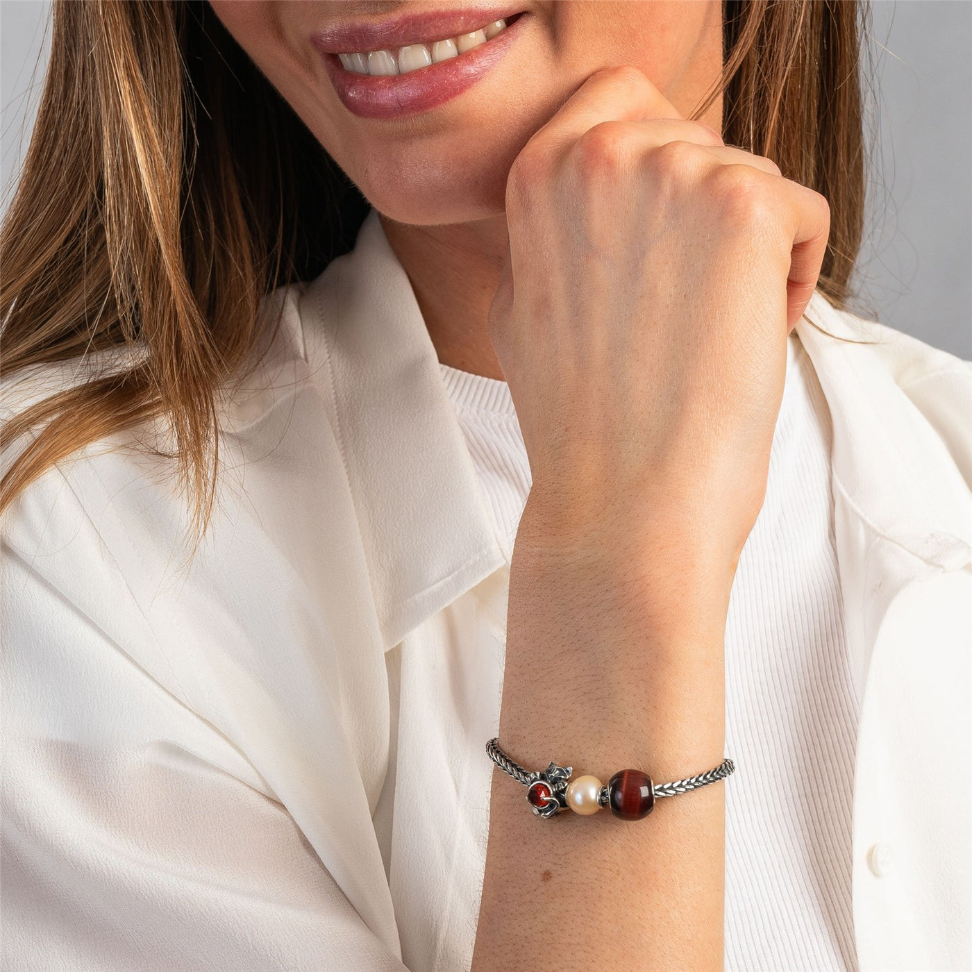 • If you use silver beads on a gold chain, be aware that some of the oxidation that sits on the silver beads will be transferred to the gold. However, this can be easily removed by polishing the chain with one of our silver polishing cloths.
