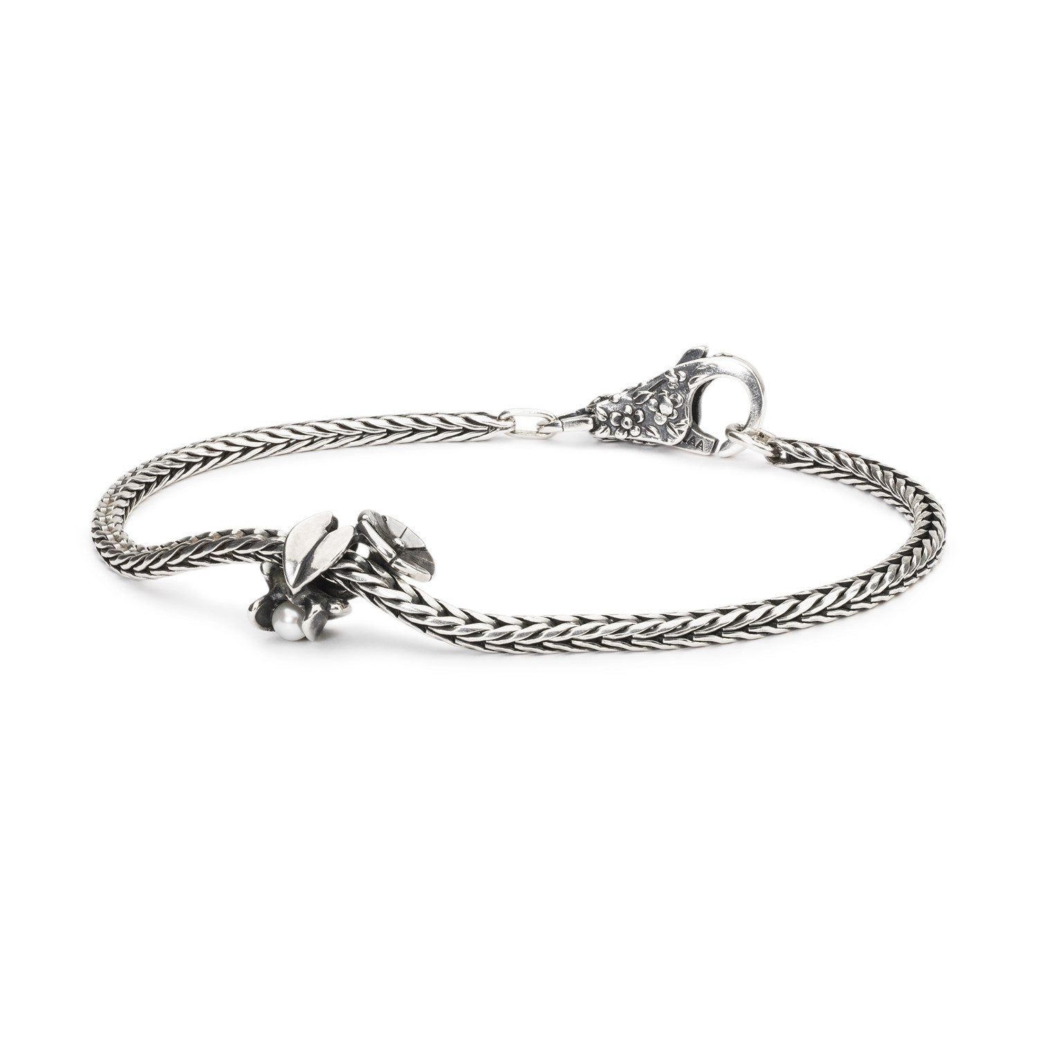 A Sterlings silver bracelet decorated with the beautiful birth flower of September. A Bindweed in silver hiding a white freshwater pearl as a symbol of beauty. The bracelet is finished with a decorative Lace Clasp. A considerate and exclusive gift for September birthdays and occasions.