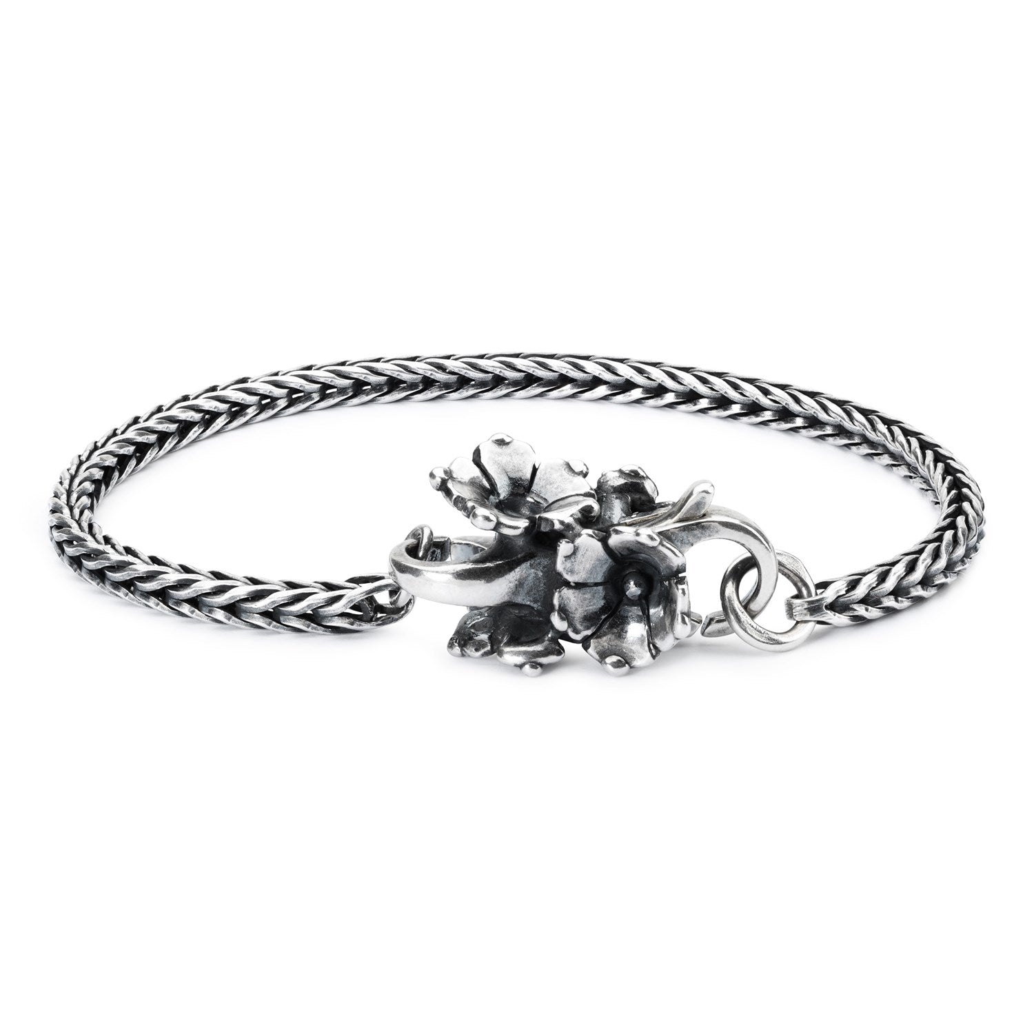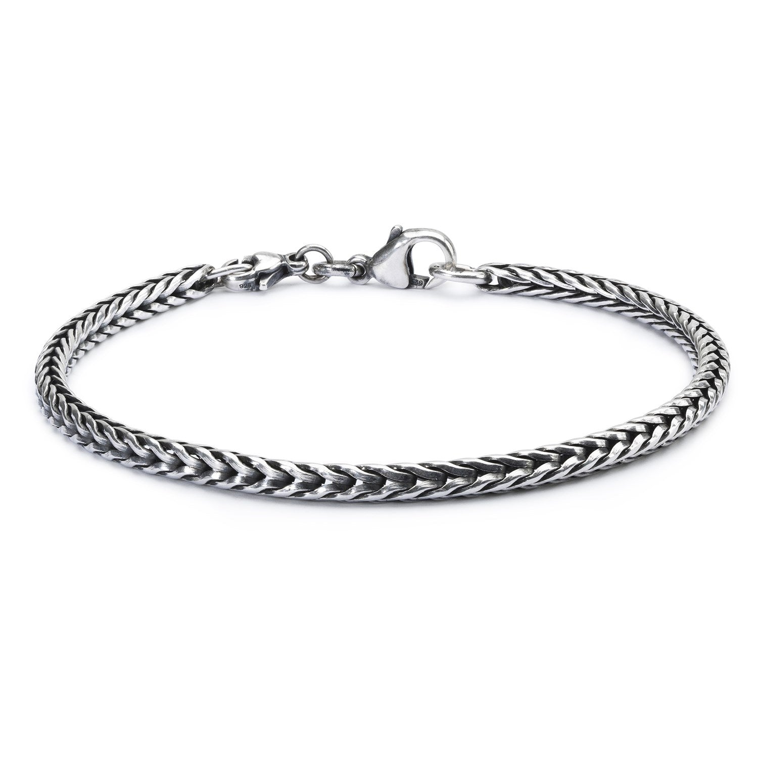 The oxidized Sterling silver bracelet has been masterfully handcrafted into Trollbeads' signature foxtail chain. The Foxtail chain consists of joints that are not soldered together, which makes the chain very flexible.