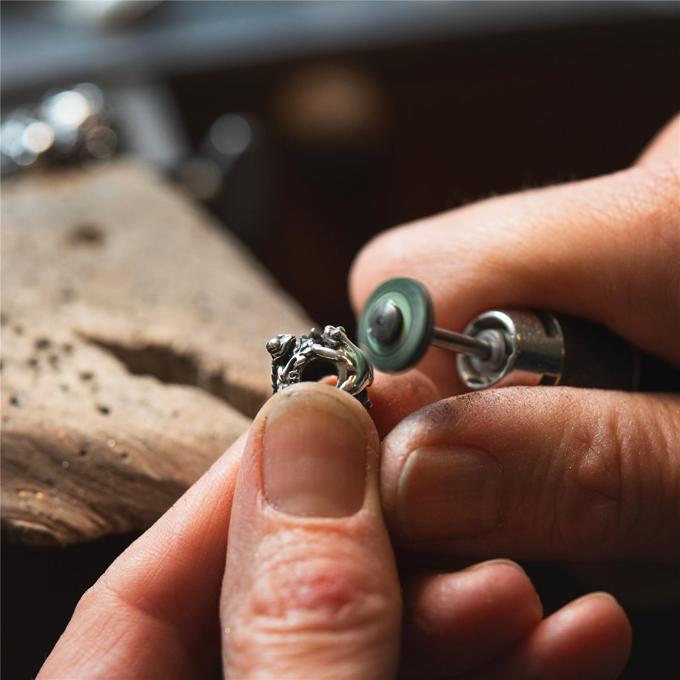 On this sterling silver bead, you will find two adorable little frogs embracing each other in what appears to be a joyful and loving dance. A beautifully detailed Water Lily flower is beautifully placed next to the frogs. This bead in created with close attention to every detail and embodies the magic of nature, when it awakes for spring at the lakeshore. Wear this bead as a statement piece on its own or combine with other meaningful beads. The only limitation is your imagination.