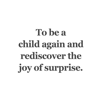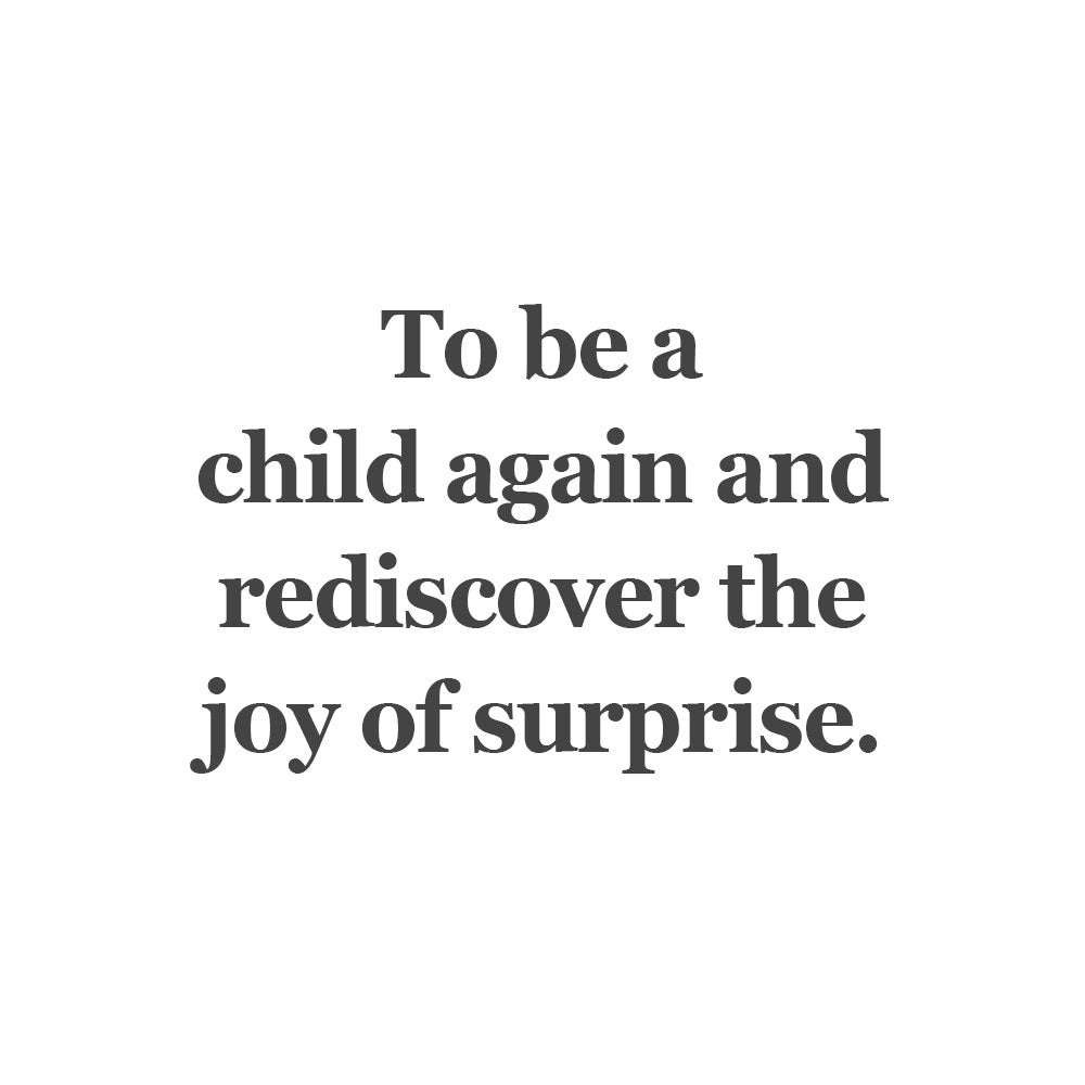 To be a child again and rediscover the joy of surprise.
