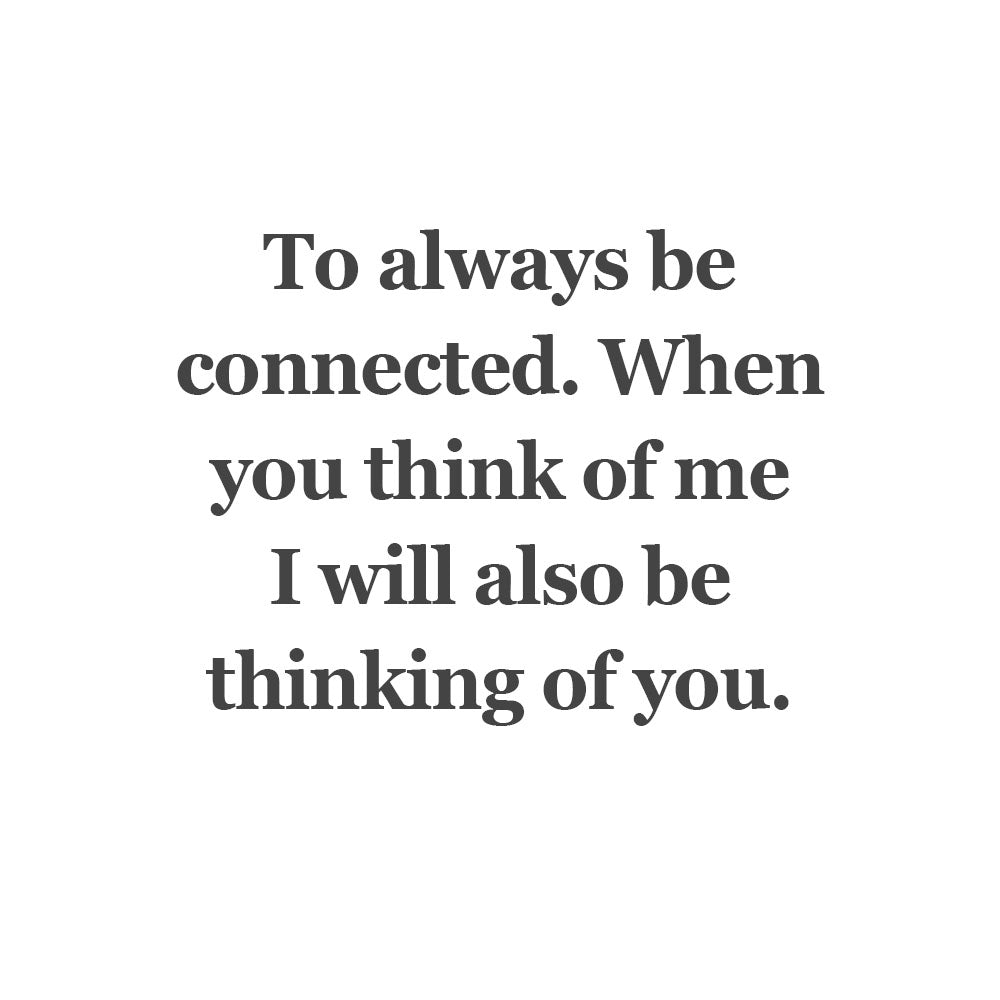 To always be connected. When you think of me I will also be thinking of you.