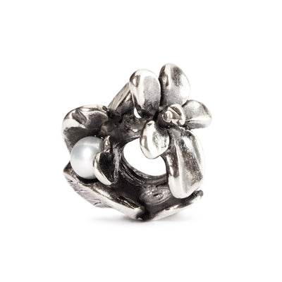 The February Violet completed my 12 birthday pearls. It is lovely and a new /older favorite. Pearls are a perfect classic addition to any themed bracelet. This bead fits perfectly against glass on a bangle.
