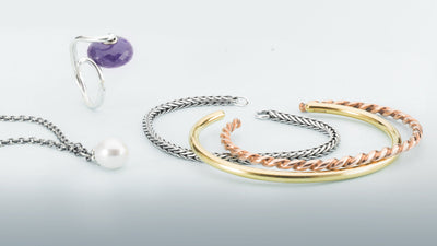 Start your story by choosing the type of jewelry carrier you want, bracelet, necklace or ring. Then choose your favorite beads or pendants, and close with a clasp or spacers.