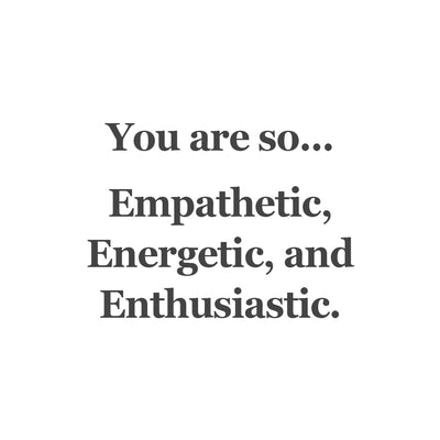 You are so... Empathetic, Energetic, and Enthusiastic.