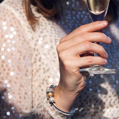 Champagne is a stunning limited edition glass bead that captures the magic of celebration. Its sparkling brilliance evokes the joy of champagne bubbles, almost letting you taste and feel them on your tongue.
