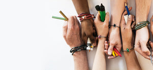 6 hands with every wrist containing a trollbeads bracelet and beads