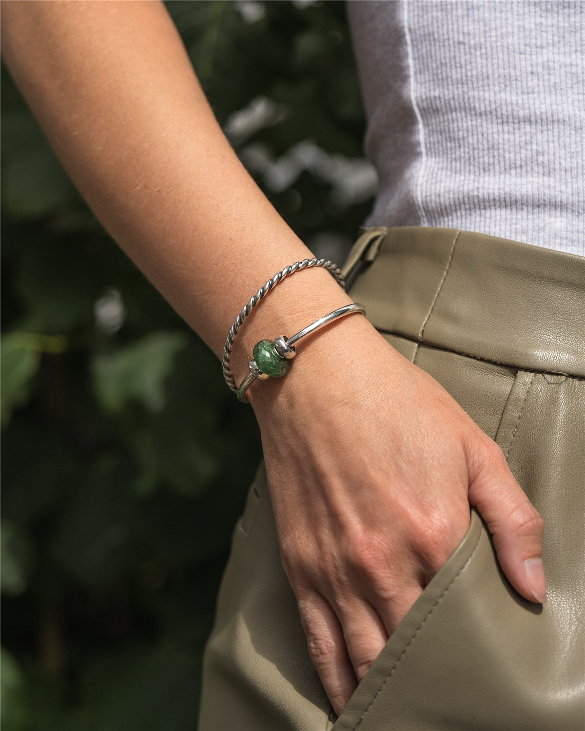Our bracelet is available in three different metals: Copper, 925 Sterling Silver og 18k gold plated and the bangles are available in several styles: Silver bangle, Twisted bangle, Heart bangle and Star bangle.
