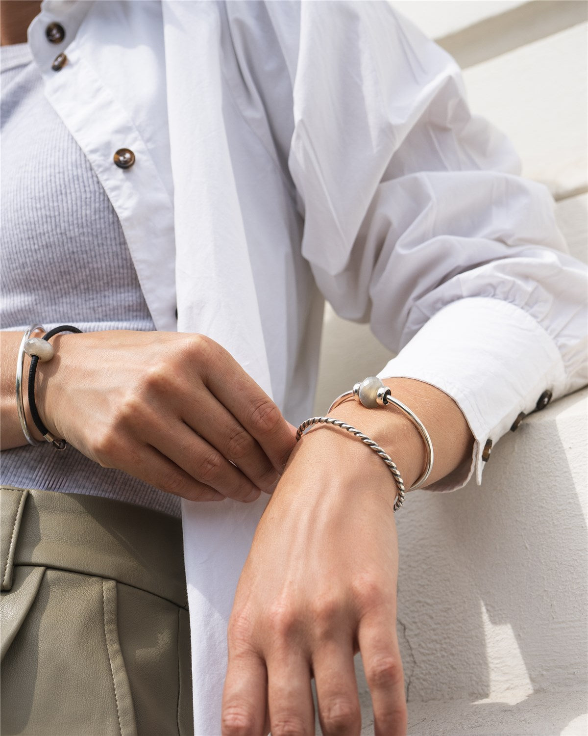Our bracelet is available in three different metals: Copper, 925 Sterling Silver og 18k gold plated and the bangles are available in several styles: Silver bangle, Twisted bangle, Heart bangle and Star bangle.