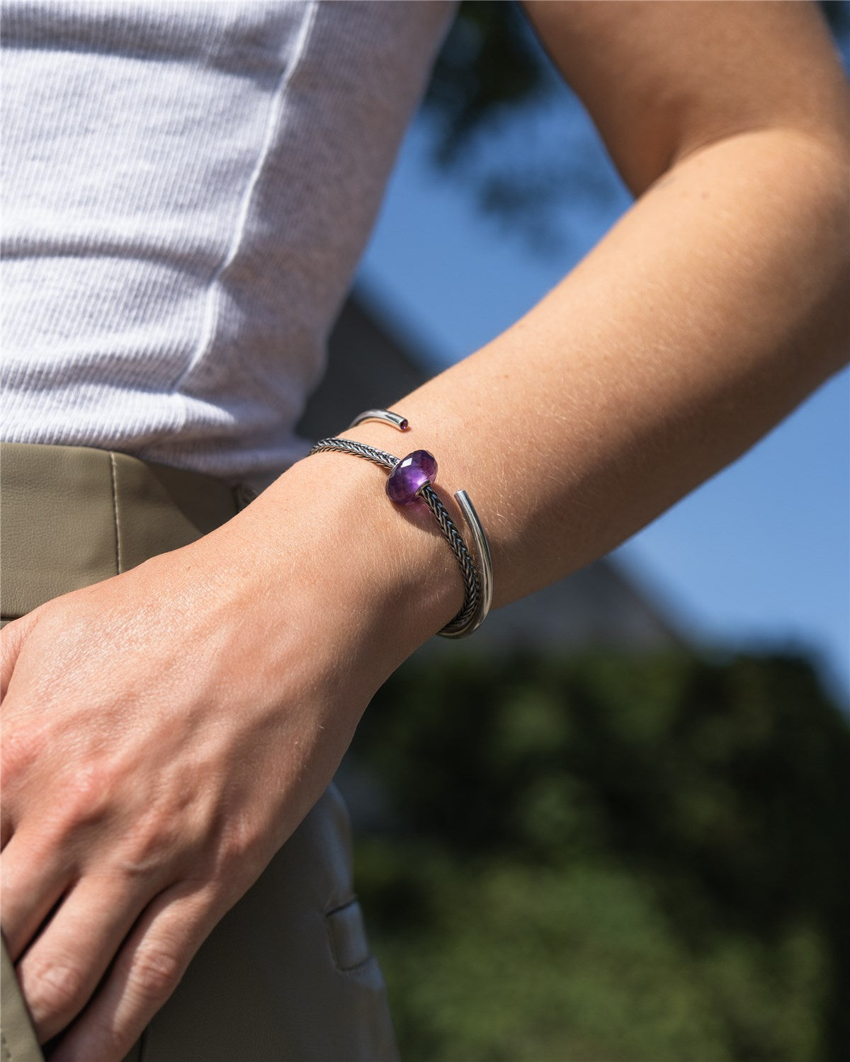 We recommend a half to a whole fingers space between wrist and bracelet. Measure your wrist, then add 2 cm longer than your tight wrist measurement so there is room for your beads, If you plan on wearing a full beaded bracelet, add an extra 0.4'' (Be aware, locks may vary slightly in size). In the end it is a matter of personal taste if you wish a closer or looser fit as well as how many beads you style your bracelet with.