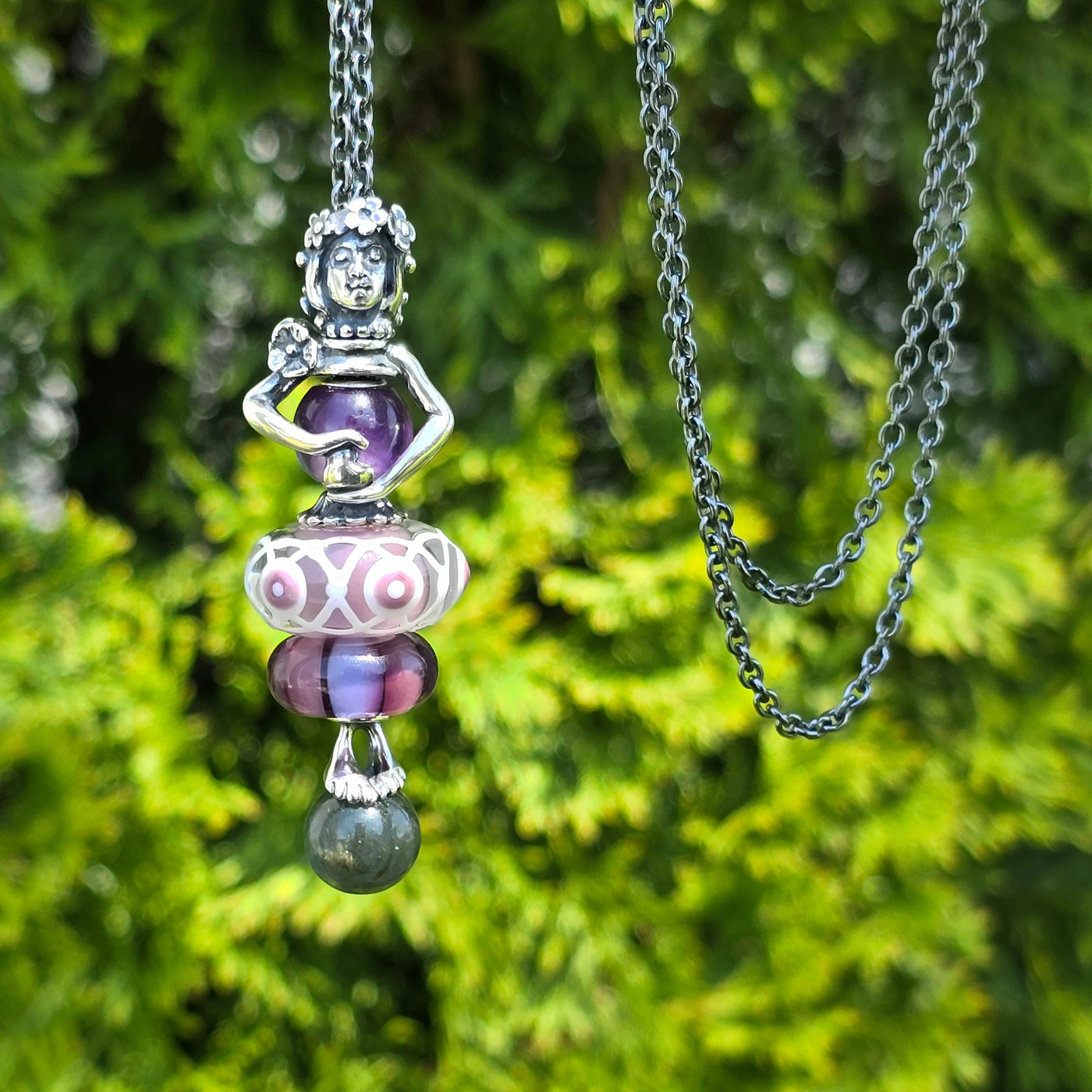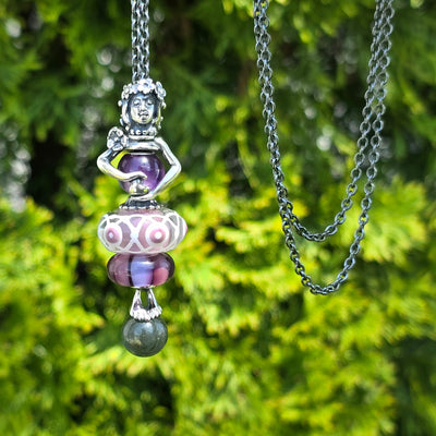 This charming combination features a statement Jumbo Unique Bead, a detailed Purple Stripes Bead, and a smooth Round Amethyst Bead.