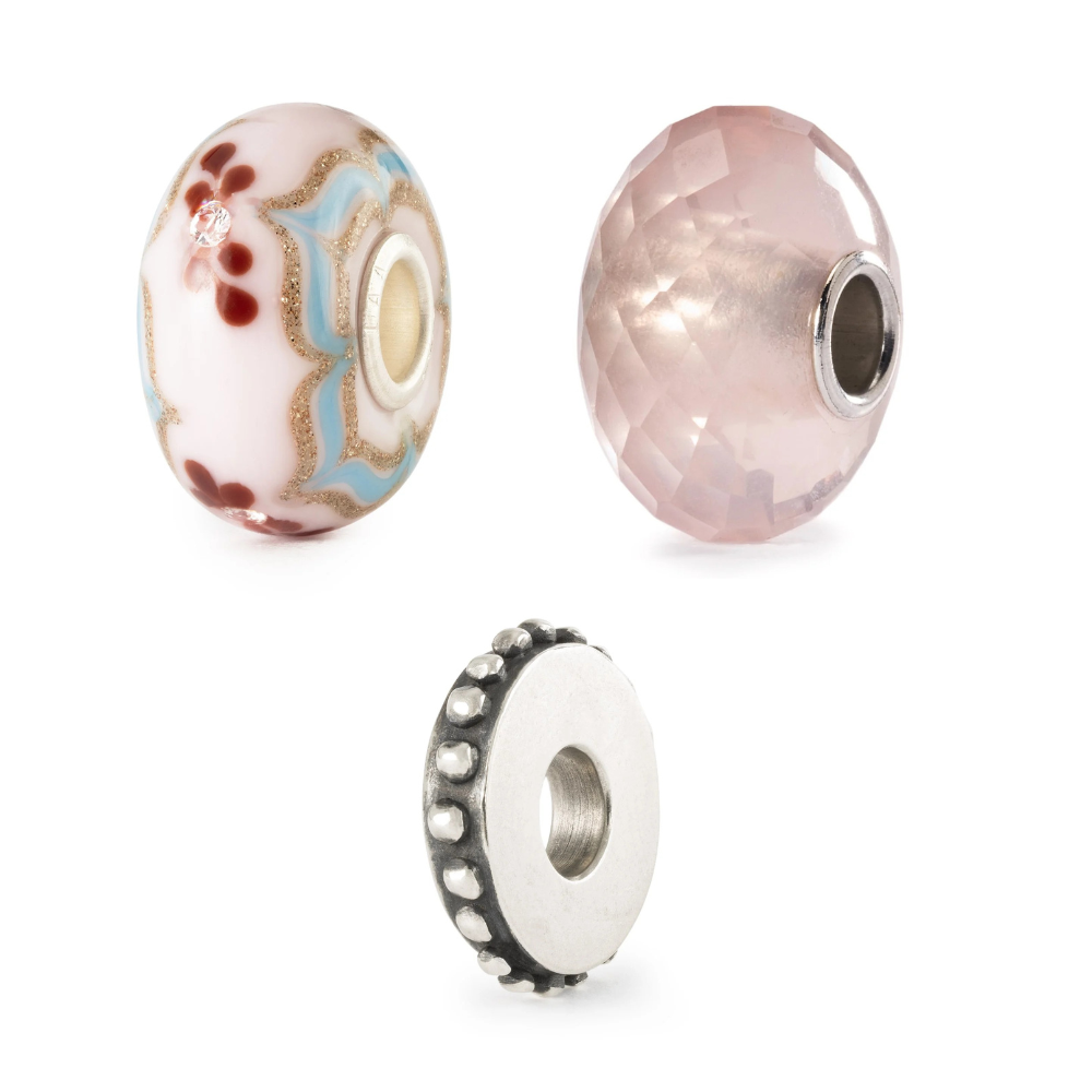 Rose Quartz Bead, featuring a stunning, translucent rose quartz gemstone, with silver core, perfect for adding a touch of love and peace to your Trollbeads jewelry.
