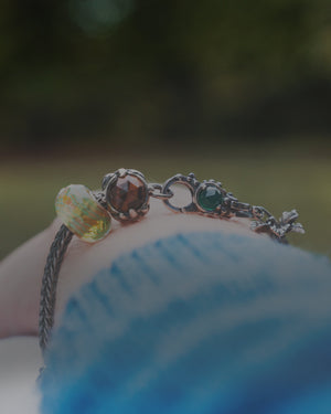 In 2001, the glass beads became a fascinating and colorful addition to the Trollbeads collection. Traditionally, glass beads have been used by themselves on jewelry. It was therefore an innovative new approach when Trollbeads began to combine the living and colorful glass with gemstone beads, gold and silver.