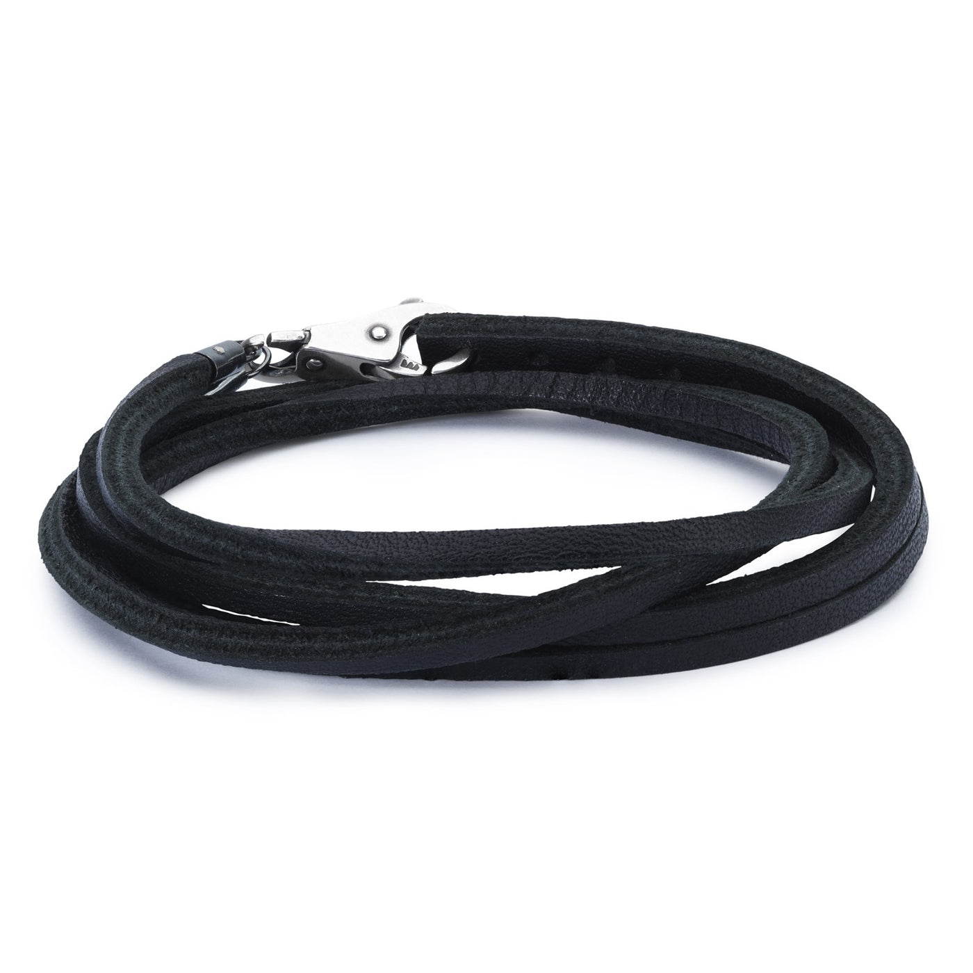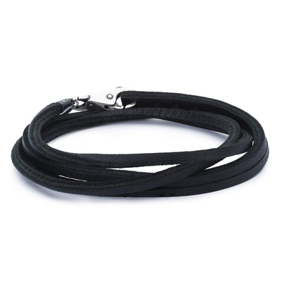 Black leather bracelet that gives you the possibility of adding a clasp, providing a comfortable and trendy base for your Trollbeads collection.