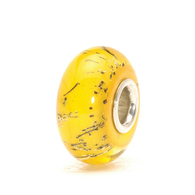 No two beads are alike. Orange golden glass engulfing threads of steel in an exciting and very different Trollbead.