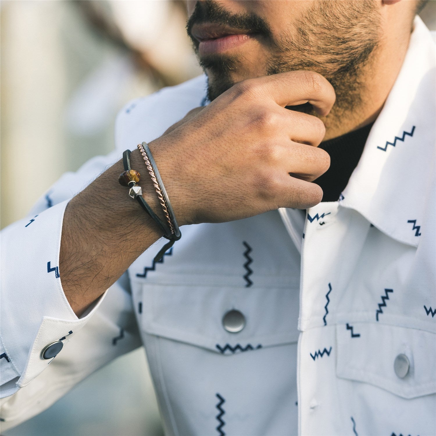 1. Wrap the bracelet around the wrist and slide one end through the loop in the leather.