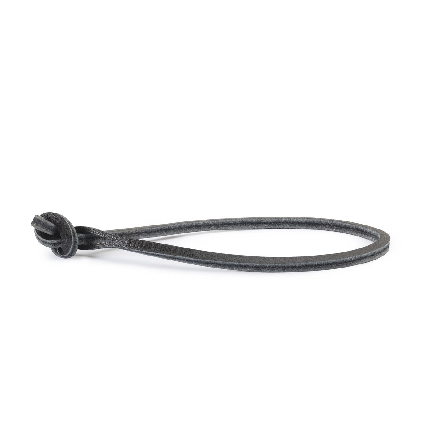 A handmade, single strap bracelet in genuine black leather. Simple yet trendy design. The band is flexible and becomes even more supple with wear.