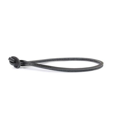 The Single Leather Bracelet does not need a clasp, instead you just tie a knot on the bracelet. The placement of the knot determines the length of the bracelet. Close the bracelet by passing the knot through the loop at the opposite length.