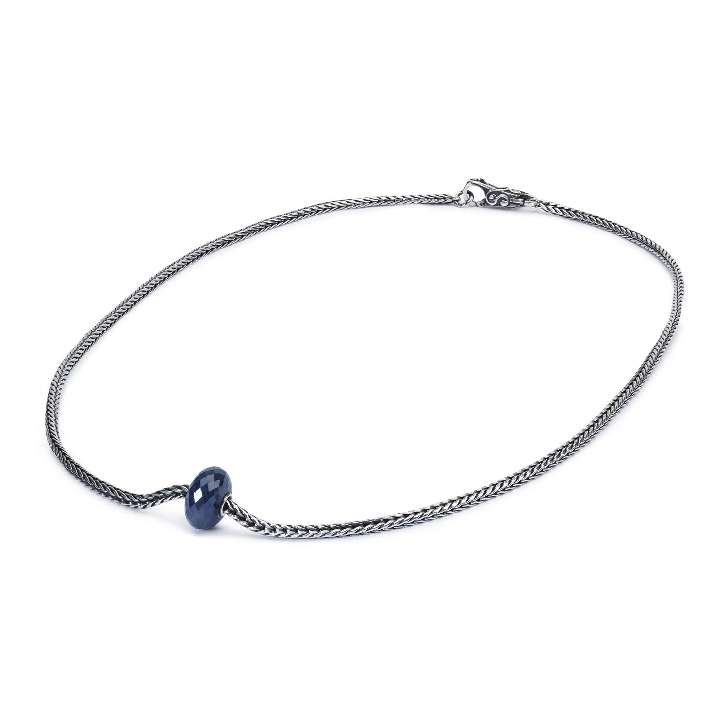 This Sterling silver necklace combines two of Trollbeads' most touched-upon themes: Wisdom and new beginnings. Made from the same mineral as a ruby, the Sapphire gemstone bead is said to symbolize truth and insight. The foxtail chain consists of joints that are not soldered together, which makes the chain very bendable. The necklace is finished with a Soft Winds of Change lock.